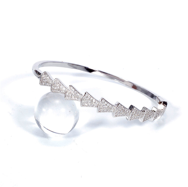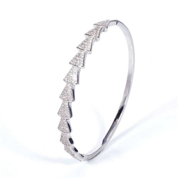 For a twist on a classic style, look no further than this bangle featuring Fan Shaped design. Lined with multiple glittering cubic zirconia, you simply cannot go wrong.
