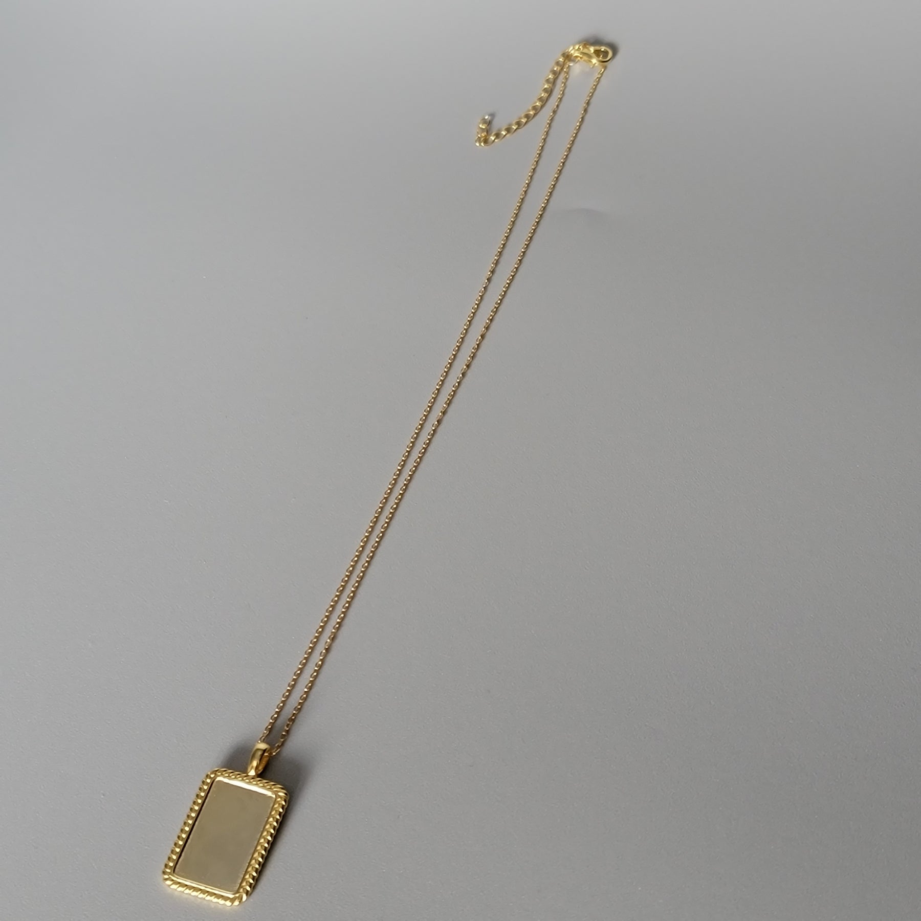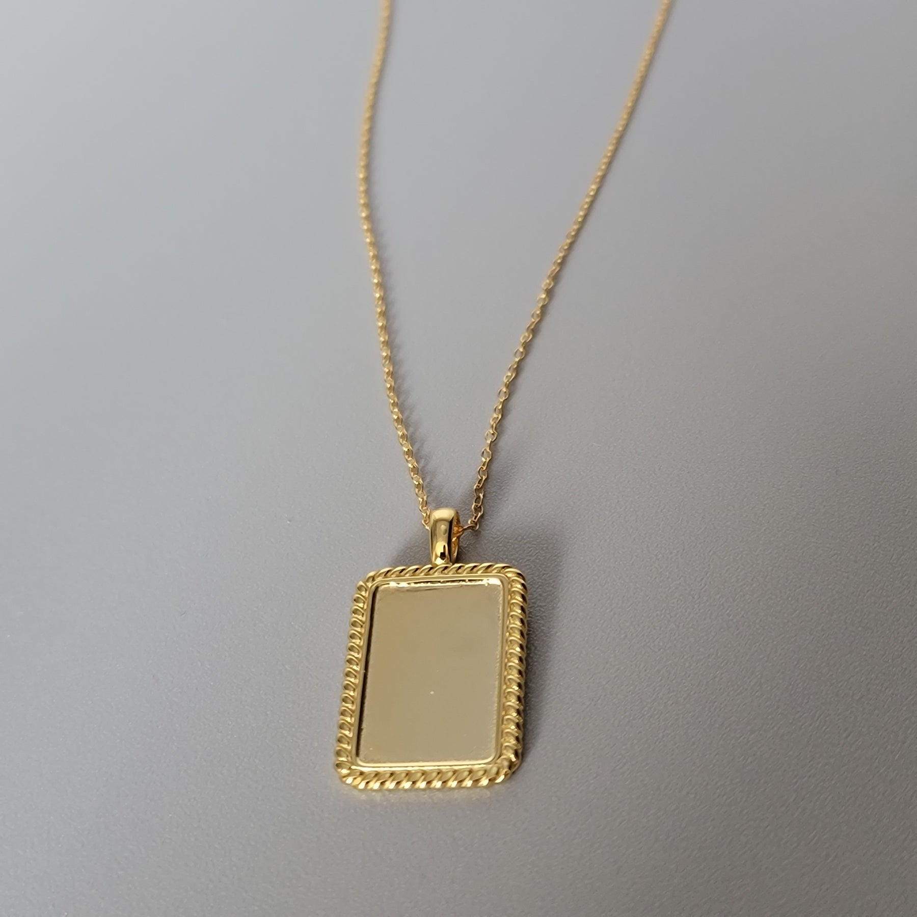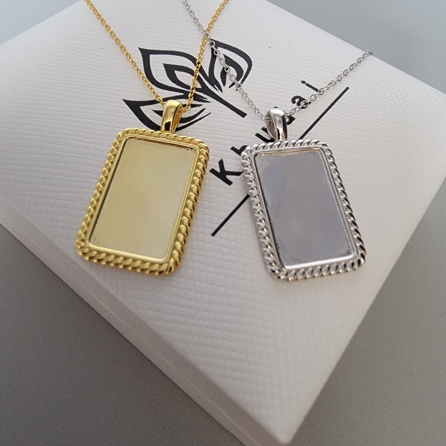 You can always add a little extra touch of magic to any outfit. Make sure you complete your look with this rectangular pendant necklace , that's equal parts sophisticated and subtle. This Necklace is Engravable, design it with your name initial or any symbol.