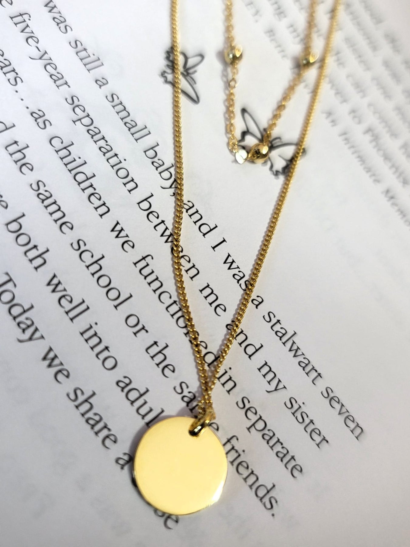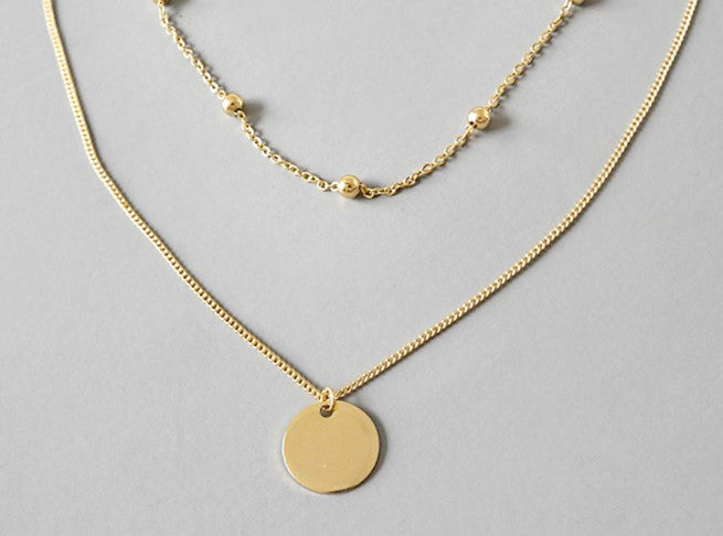 Double Layer Choker Necklace is perfect to wear with a sweetheart cut blouse or over a turtle neck t-shirt. Disc can be customized with engraving or you can wear it alone! Perfect elegant piece to wear over a black satin dress.