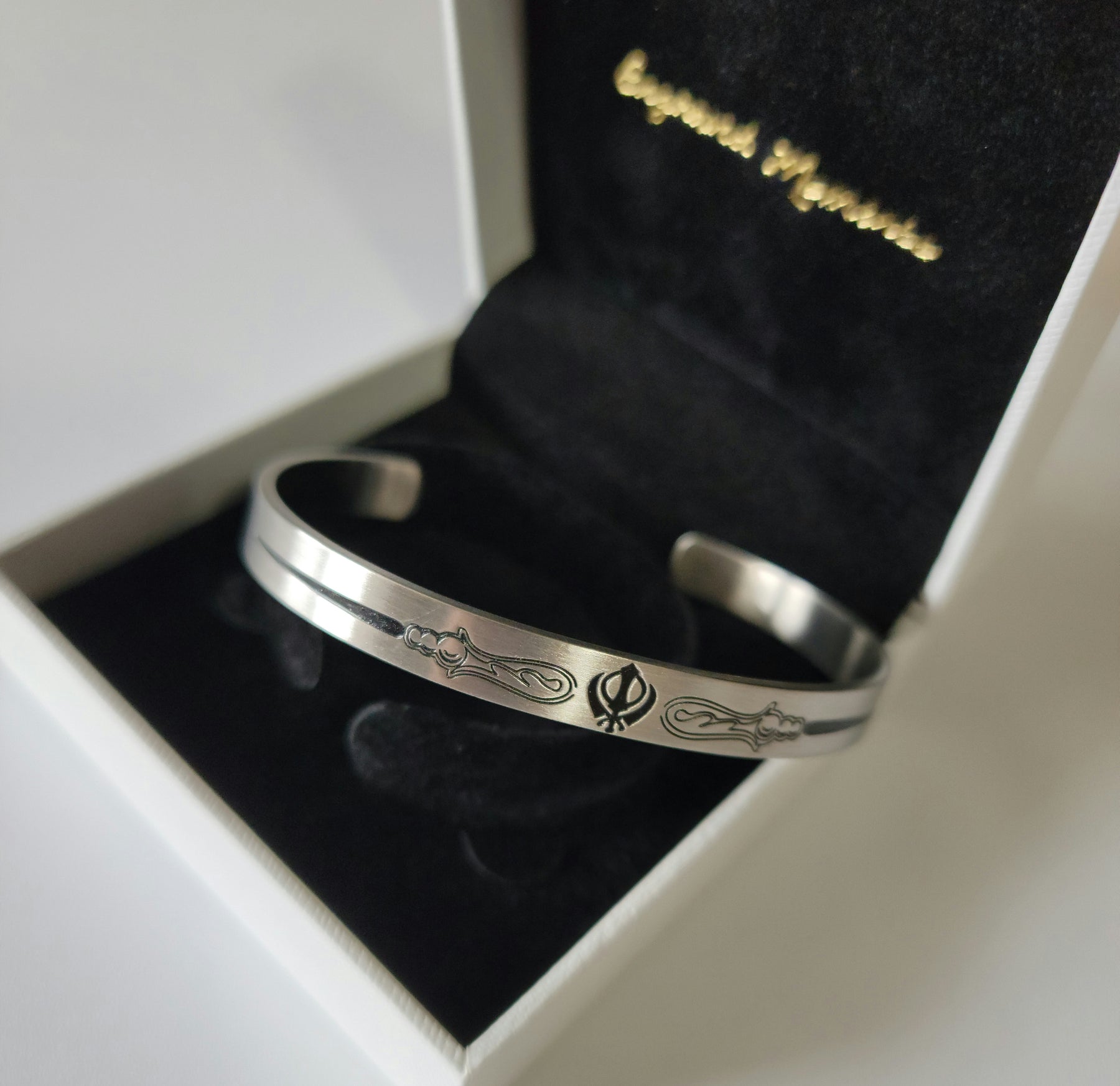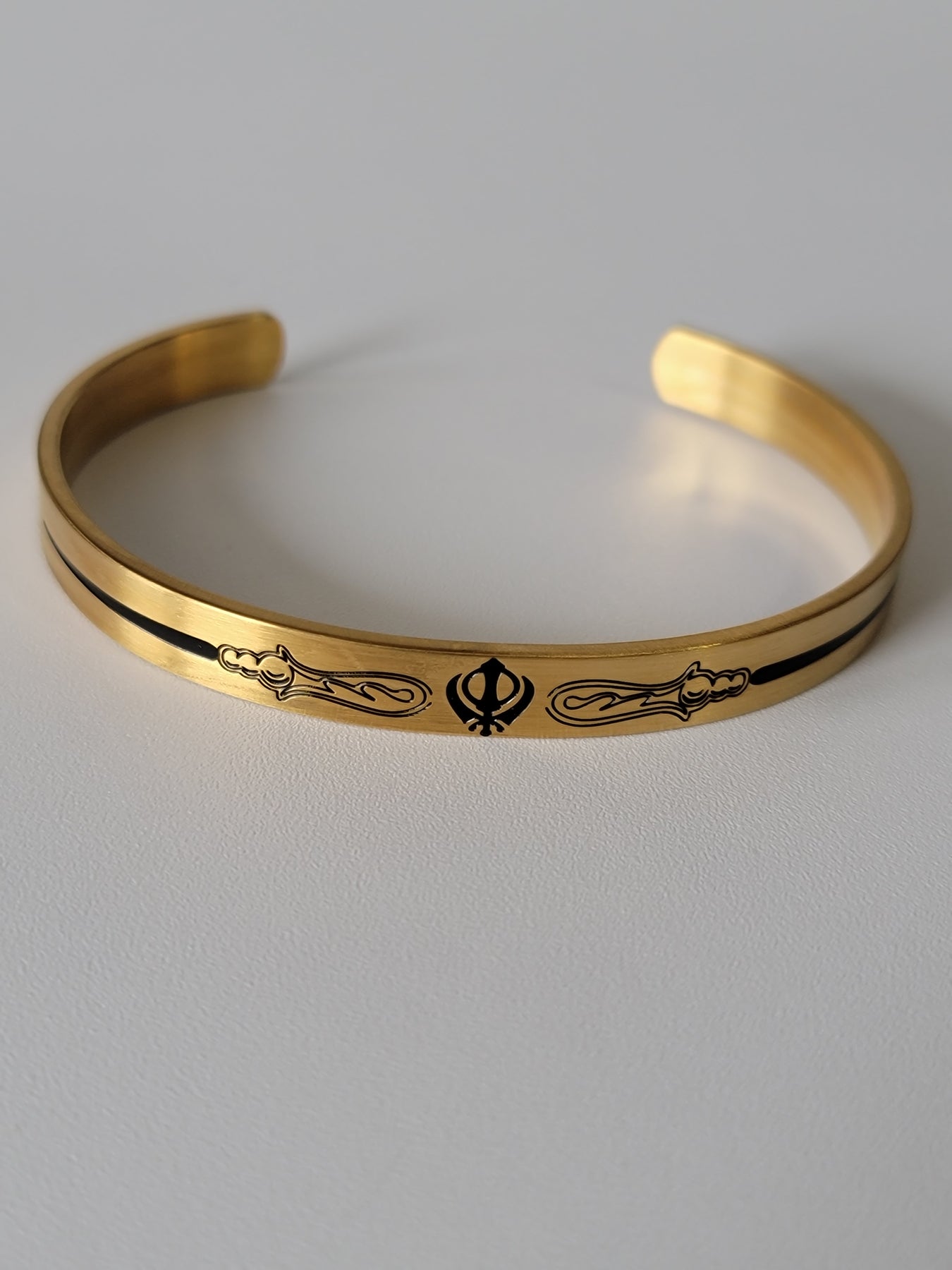 This stainless steel cuff bracelet with "KHANDA" symbol brings sophistication and simplicity to your look! This adjusted simple cuff measures 8 inches long and can be adjusted to fit smaller or larger wrist sizes. Wear it every day or for formal events - it works anywhere.
