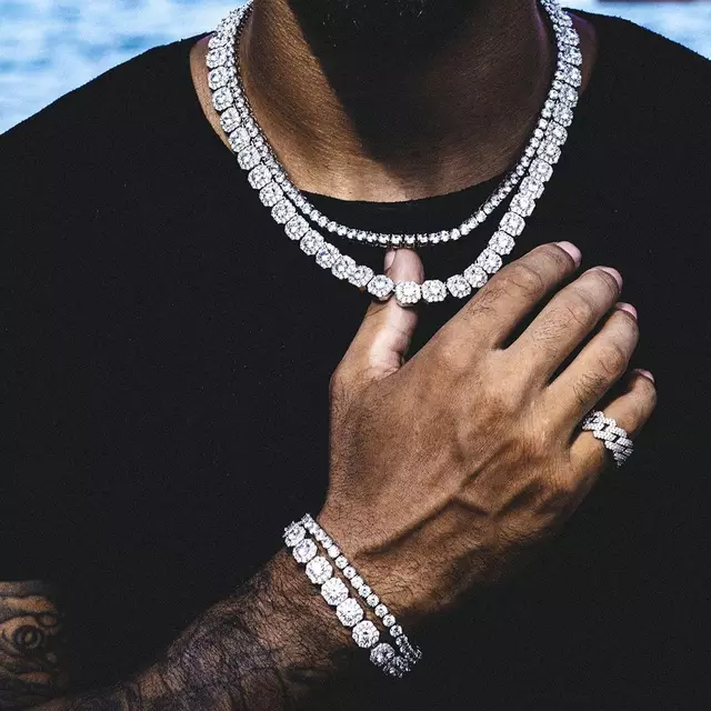Our new Diamond Baguette Clustered Tennis Necklace with round cut enormous stones/diamonds for an incredible shine. This piece catches light from all angles to keep your wrist dancing day or night.