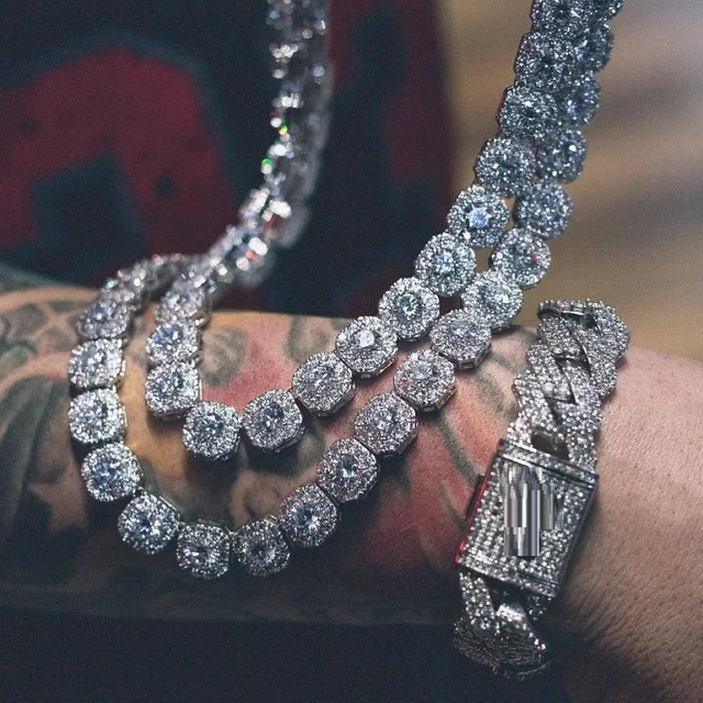 Iced Out Bling Men Clustered Tennis Chain 5A Zirconia CZ Cluster Necklace