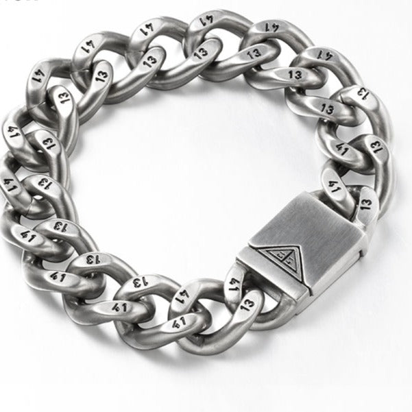 This BlindReason bracelet hand link head is designed with magnetic buckle, and the magnet is firmly inlaid. It is not easy to fall-off and suitable for long wear. Engraved with 13/41 digits. The angel number 1341 stands for the origin of life, the new beginning, it is the number of God. The 1341 represents the basis of all other numbers.