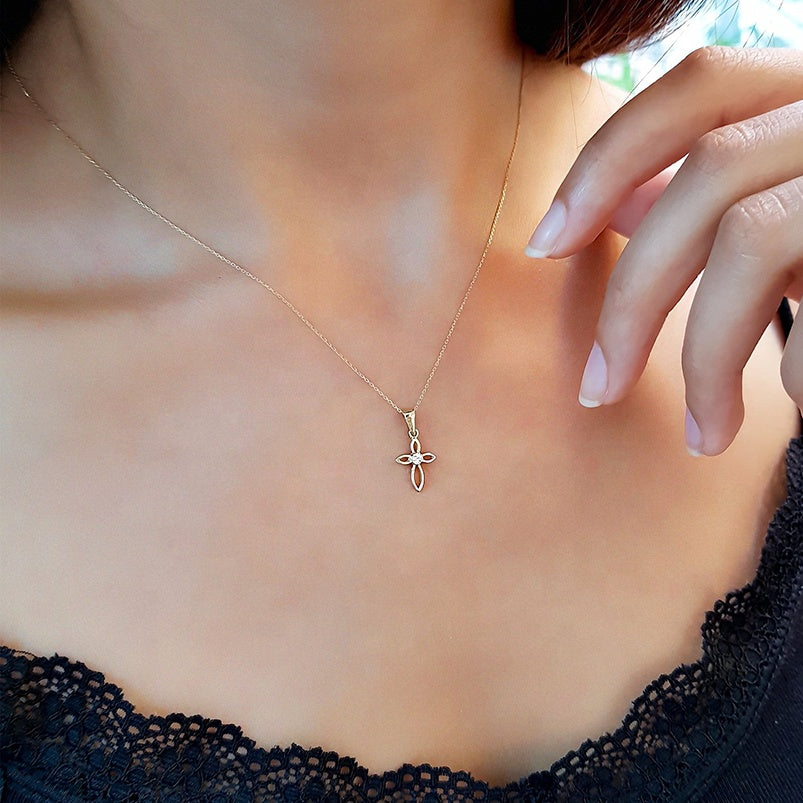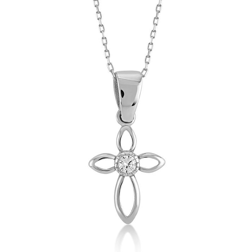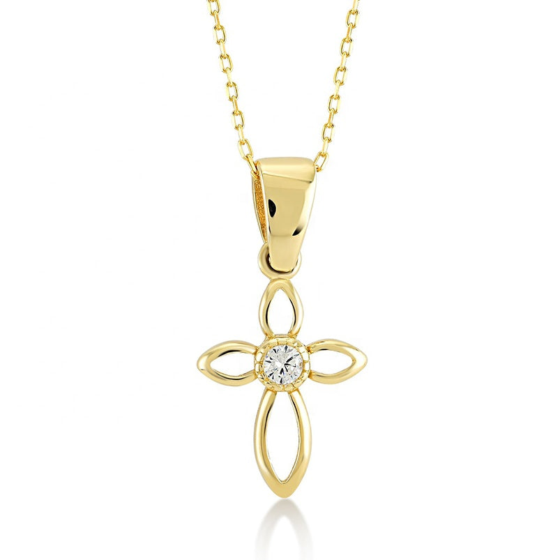Faith and beauty combine to create this dazzling cross pendant. Crafted in sterling silver with 18k Gold plated this polished and grooved design features a center stone artfully set to enhance size and sparkle - at its center. Buffed to a brilliant luster, this spiritual pendant suspends along an 18inch chain.