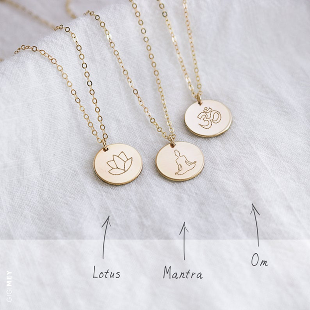 High polished engravable round charm pendant stainless steel disc necklace for women, Can be engraved of a symbol or with a name initial.