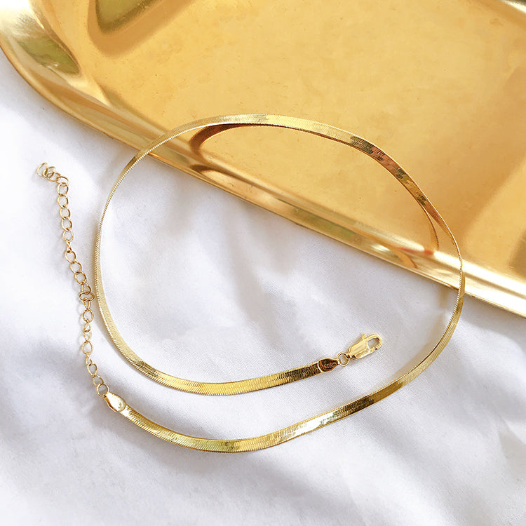 Share your love for fashion with this impressive herringbone snake chain in sterling silver. The perfect accessory to complement every outfit, this stunning piece guarantees you'll stay on-trend while flaunting your fabulous style.